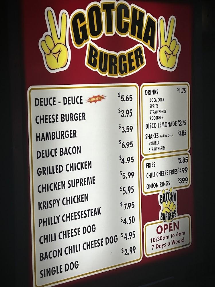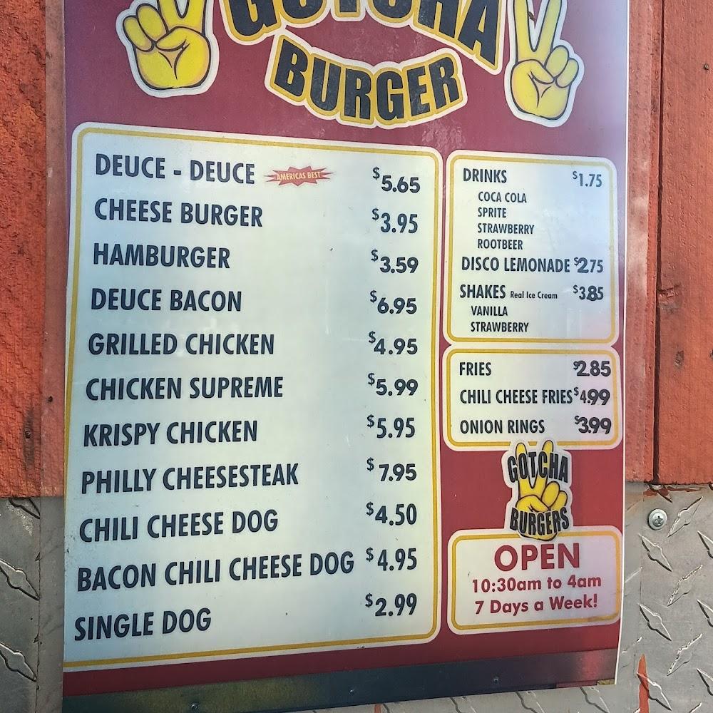 Gotcha Burger offers a variety of satisfying dishes. Their menu features a lineup of burgers, sandwiches, and sides, including the famous Deuce-Deuce and cheeseburgers. With around 15 options, choices cater to different tastes and include grilled chicken sandwiches for non-beef lovers. Savory sides like chili fries and onion rings complement meals perfectly, rounding out the experience. Average prices hover around $5.50, making it an affordable place for everyone. Pair a meal with a simple soda, available for just $1.75. Each meal tells a story of comfort and flavor that brings people together.