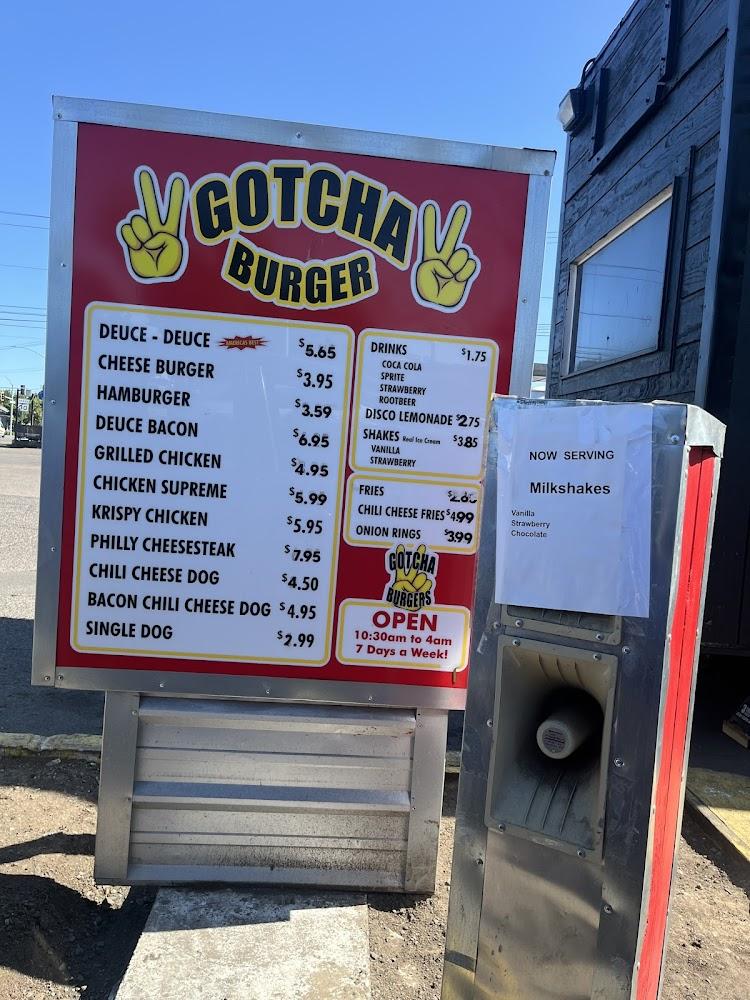 Welcome to Gotcha Burger, your go-to spot for delicious, affordable fast food in Eugene, OR! Located at 1702 W 7th Ave, we specialize in mouthwatering hamburgers, crispy fries, and satisfying comfort food. With a relaxed atmosphere, family-friendly dining, and outdoor terrace, it’s perfect for lunch, dinner, or a solo bite. Enjoy the convenience of our drive-thru, delivery, and takeout options. Don’t forget to try our popular onion rings and chili-dogs! Open late on weekends, we also offer accessible parking and accept credit and debit cards for easy payments. Come and savor a delightful meal today!